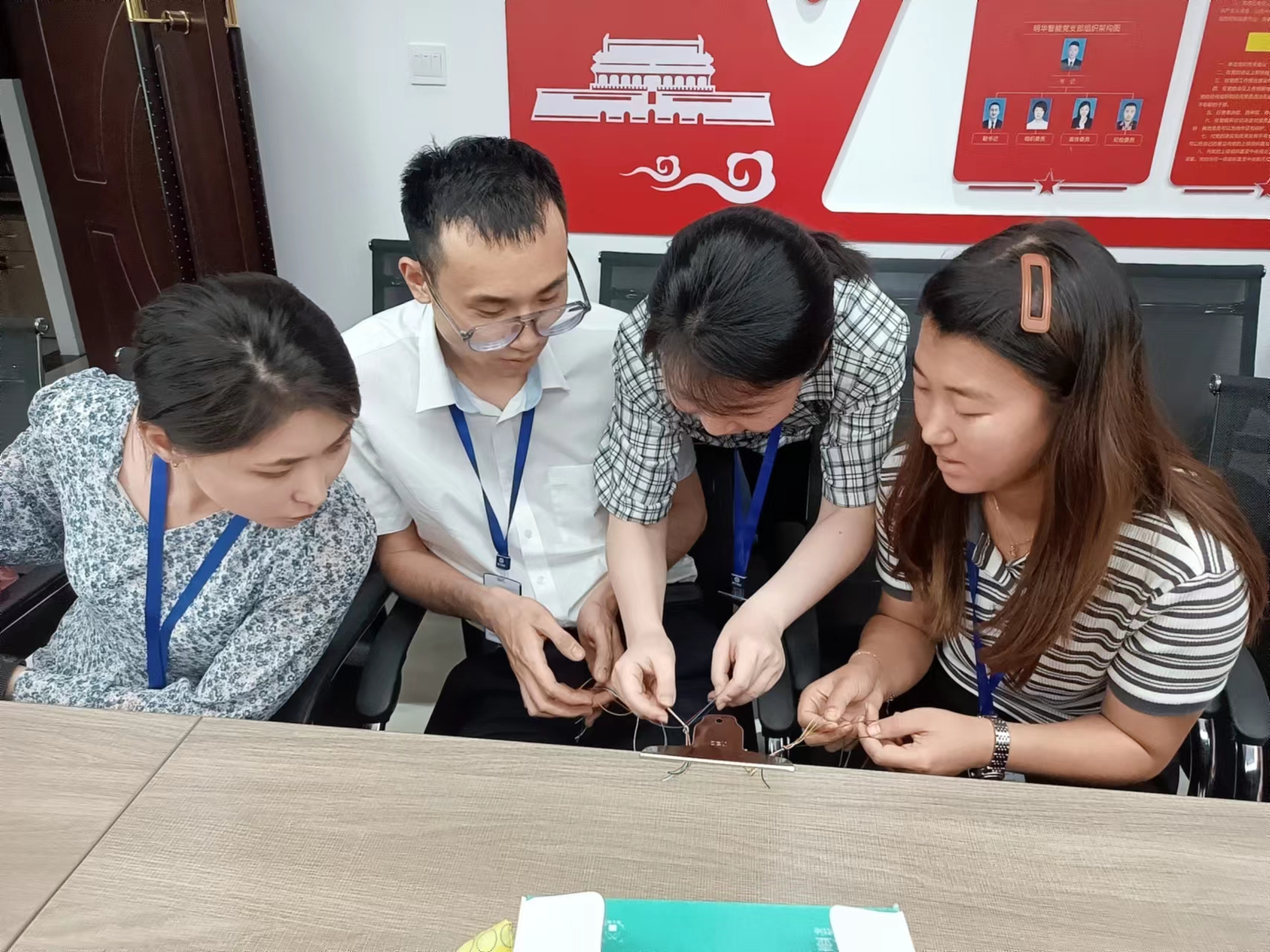 當(dāng)主持人介紹了端午制作五彩繩的寓意、并講解了五彩繩的制作方法后,大家都躍躍欲試,隨即按照自己喜愛(ài)的配色編制起來(lái)。看似簡(jiǎn)單的步驟,卻不是人人都能一學(xué)就會(huì),大家相互交流,團(tuán)結(jié)協(xié)作,忙得不亦樂(lè)乎。小小的五彩繩不僅展示出了避邪驅(qū)瘟、襟頭點(diǎn)綴的美好寓意,更是代表了人民群眾勤勞致富,巧手興業(yè),通過(guò)辛勤勞作收獲幸福的美好愿望。