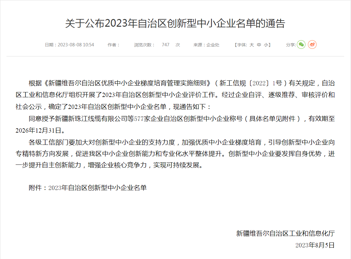 近日,新疆維吾爾自治區(qū)工業(yè)和信息化廳公布了2023年創(chuàng)新型中小企業(yè)名單,明華科技集團(tuán)有限公司榮獲“創(chuàng)新型中小企業(yè)”榮譽(yù)稱號(hào)。