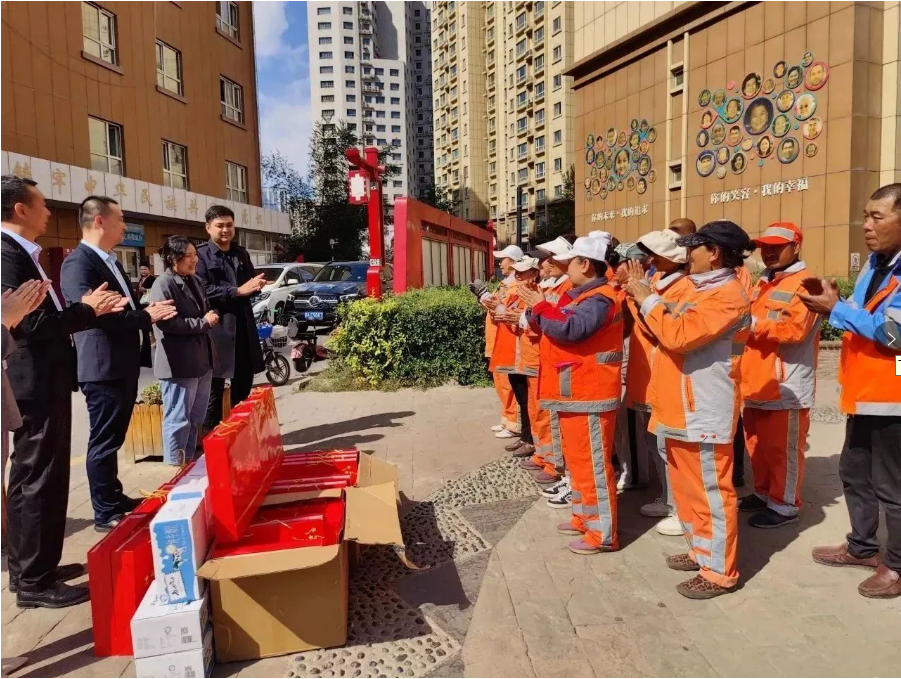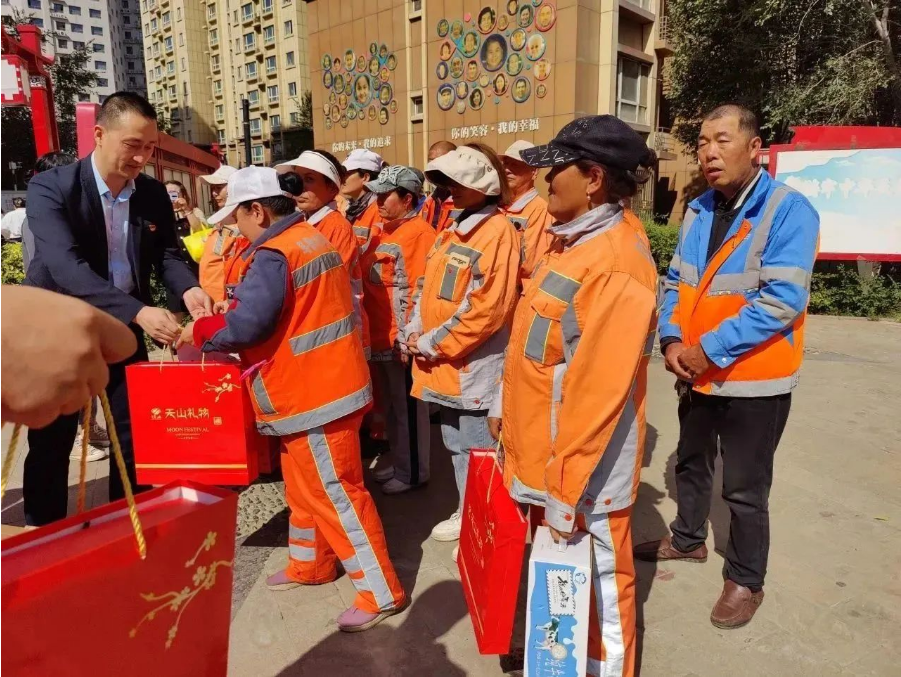 明華智能總經(jīng)理及黨支部黨員代表王偉同志、明華智能工會(huì)主席普建同志對(duì)轄區(qū)環(huán)衛(wèi)工人一直所付出的辛勤勞動(dòng)汗水表示感謝,感謝他們長(zhǎng)期以來(lái)為轄區(qū)環(huán)境衛(wèi)生維護(hù)做出的貢獻(xiàn),每天起早貪黑為大家創(chuàng)造干凈整潔的市容環(huán)境。隨后,明華智能總經(jīng)理王偉同志向每位環(huán)衛(wèi)工人送上了月餅、牛奶等慰問(wèn)品,并叮囑他們?cè)谧龊眯l(wèi)生工作的同時(shí),更需要科學(xué)、合理地安排好作息時(shí)間,更要做好入秋后的自我防寒保暖工作。