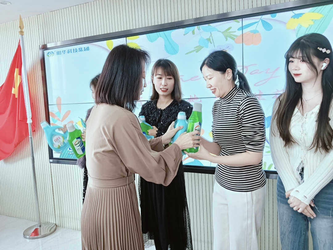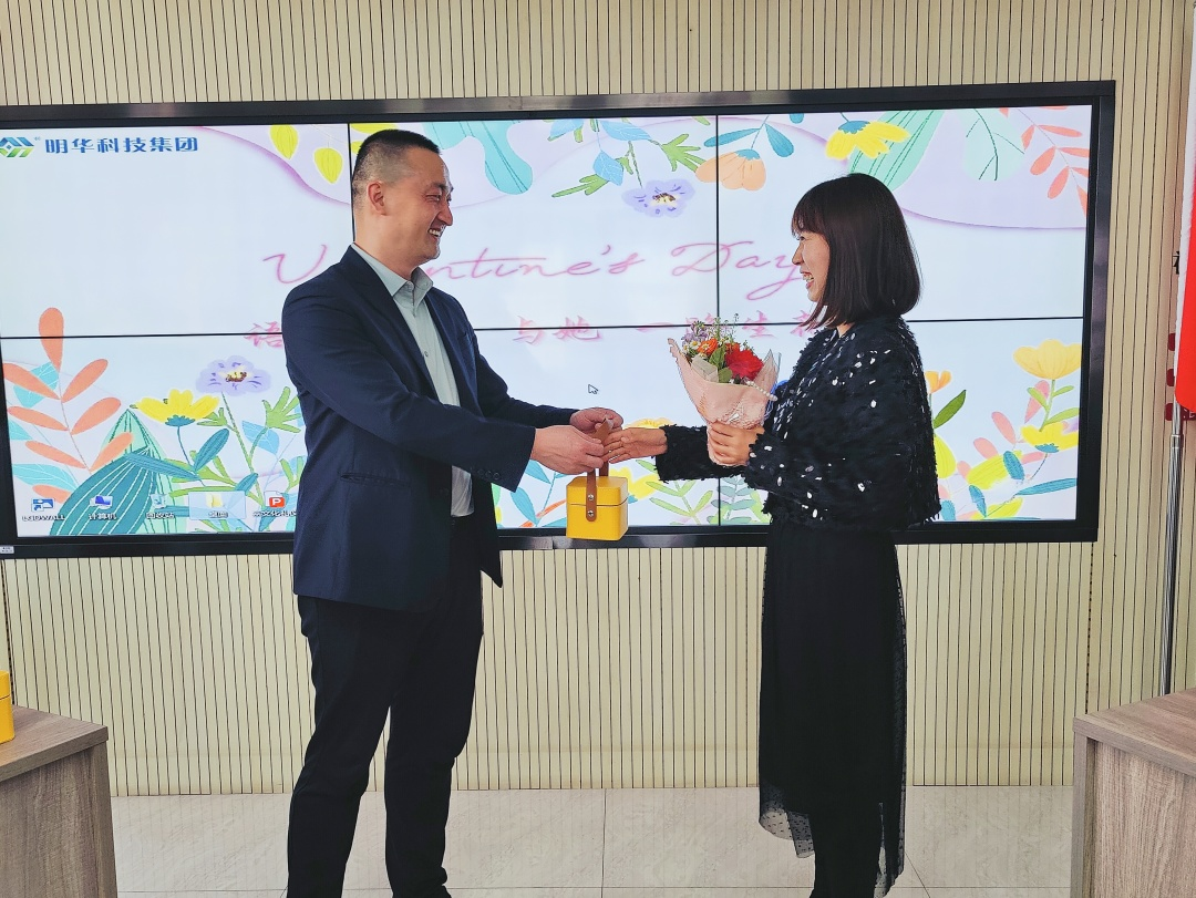 最后,明華集團工會主席普建作為代表,向女職工們送上節(jié)日小花束。與此同時,明華集團黨支部副書記韓新莉也向明華全體男職工贈以康乃馨,并傳達(dá)對其家人的節(jié)日祝福。