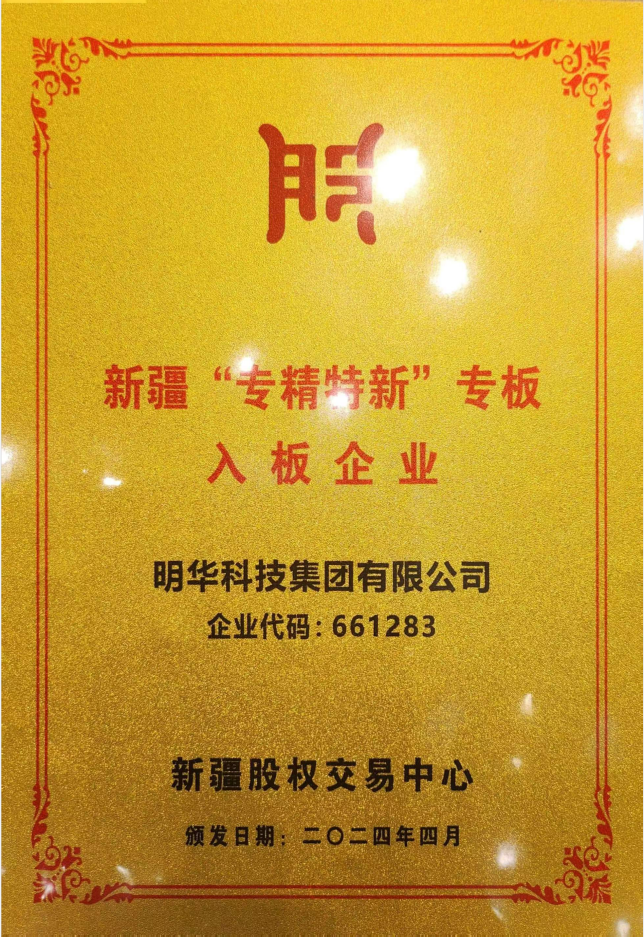 2024年4月16日上午,由自治區(qū)工信廳聯(lián)合自治區(qū)黨委金融辦、中國證監(jiān)會新疆監(jiān)管局、兵團黨委金融辦、兵團工業(yè)和信息化局、新疆股權交易中心在烏魯木齊市舉辦的新疆“專精特新”專板開板儀式圓滿落下帷幕,明華科技集團正式進入新疆“專精特新”專板,成為新疆首批專板入板企業(yè)。