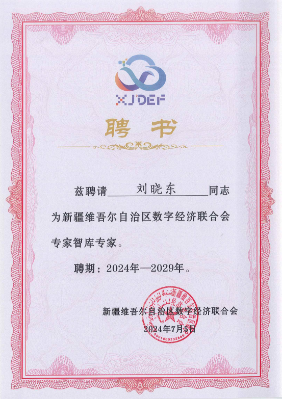 2024年7月13日,新疆?dāng)?shù)字經(jīng)濟(jì)聯(lián)合會(huì)專(zhuān)家智庫(kù)成立大會(huì)暨第一次全體會(huì)議在烏魯木齊市成功召開(kāi)。此次大會(huì),共有138位具有深厚專(zhuān)業(yè)知識(shí)和豐富實(shí)踐經(jīng)驗(yàn)的專(zhuān)家受聘為專(zhuān)家智庫(kù)(首批)專(zhuān)家,新疆?dāng)?shù)字經(jīng)濟(jì)聯(lián)合會(huì)會(huì)長(zhǎng)蘇國(guó)平為每位專(zhuān)家智庫(kù)成員頒發(fā)了聘書(shū),明華科技集團(tuán)董事長(zhǎng)劉曉東成功受聘為新疆?dāng)?shù)字經(jīng)濟(jì)聯(lián)合會(huì)專(zhuān)家智庫(kù)專(zhuān)家。