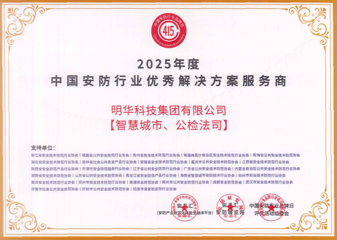此次榮譽(yù)不僅是對(duì)明華科技集團(tuán)在安防領(lǐng)域綜合實(shí)力的高度認(rèn)可,更是對(duì)我們?cè)诩夹g(shù)創(chuàng)新、服務(wù)品質(zhì)及行業(yè)貢獻(xiàn)上的持續(xù)肯定。