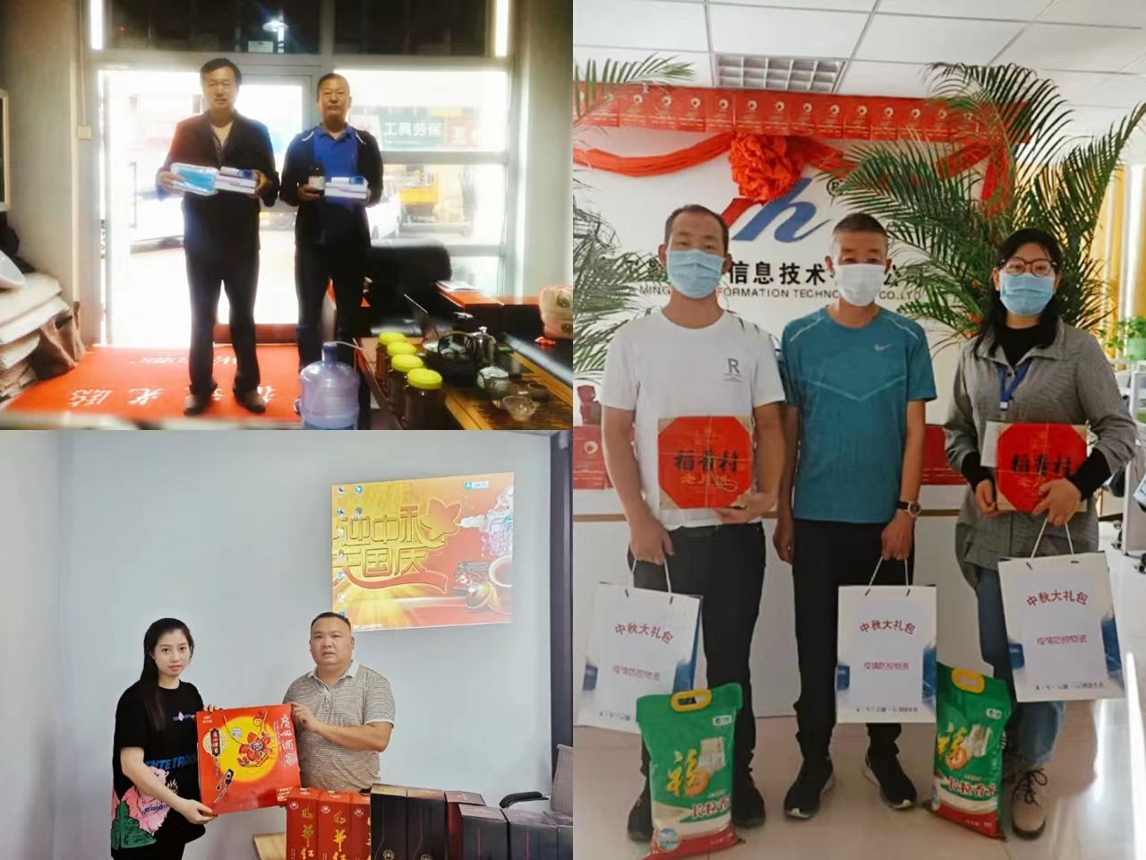 當(dāng)日下午,公司接連開展了“喜迎中秋·盛世華誕”的雙節(jié)共慶福利發(fā)放活動(dòng),此次福利不僅準(zhǔn)備了月餅和大米,還根據(jù)當(dāng)前需求為每位員工發(fā)放了齊全配套的疫情防控物資,各子分公司及項(xiàng)目部也按照總部要求為員工發(fā)放了中秋福利。公司希望在保障大家健康安全的同時(shí)感受到真摯的節(jié)日祝福。運(yùn)維部員工表示:“在明華這個(gè)大家庭里,公司給予我們的不僅僅發(fā)展平臺(tái)與自我價(jià)值的體現(xiàn),更多的是人性化的關(guān)懷和溫暖。在今年如此嚴(yán)峻的形式下,公司仍處處為我們著想,時(shí)刻叮囑我們外出做好防護(hù),還專門發(fā)放了防疫物資,非常感謝公司對(duì)大家的關(guān)心和照顧。 ”