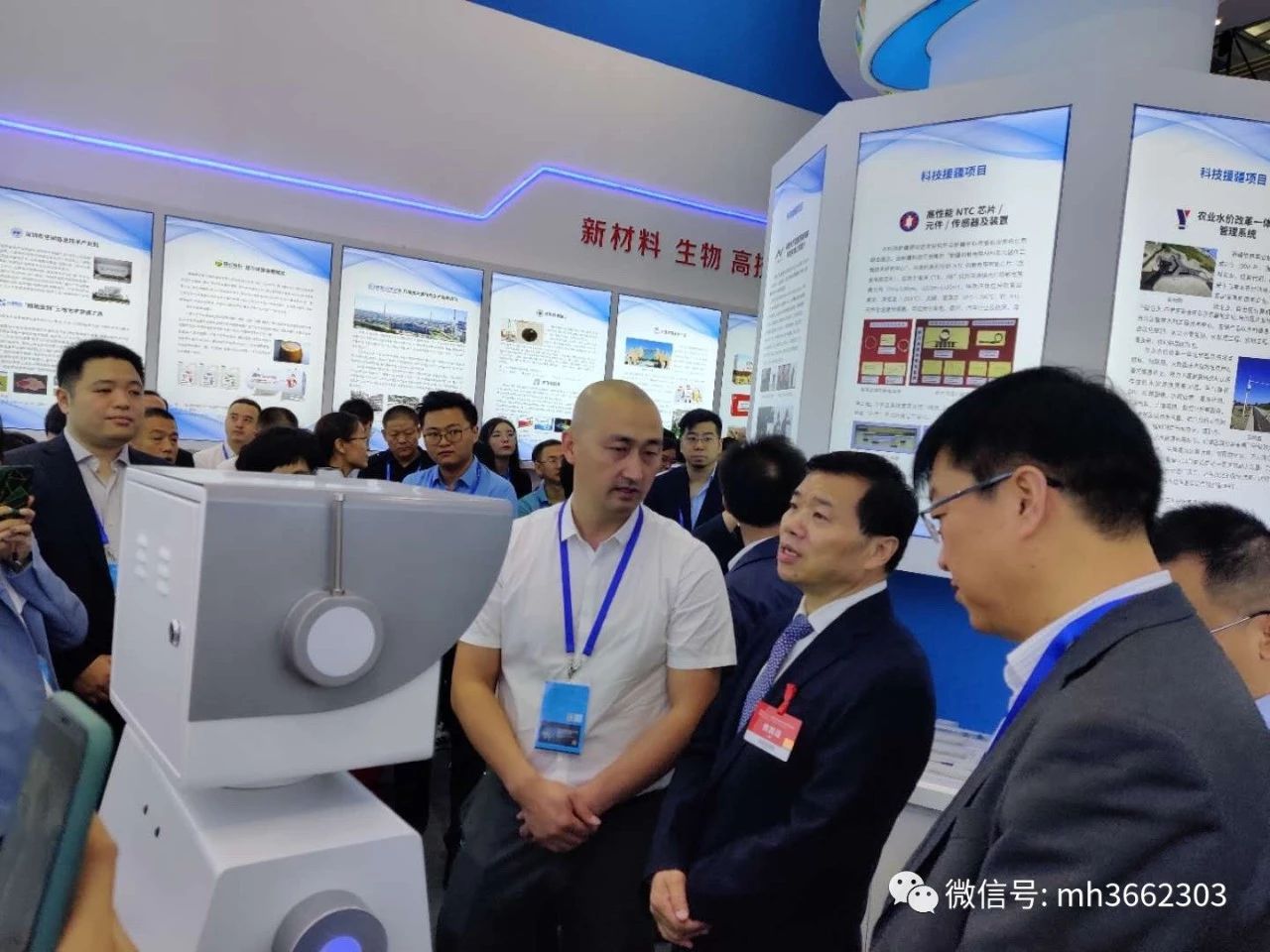 開幕式結束,自治區(qū)人民政府副秘書長、新疆政府代表團團長許龍章和自治區(qū)科技廳黨組副書記、廳長,新疆政府代表團副團長張小雷,自治區(qū)科技廳黨組成員、副廳長劉智敏一行等人前往位于9號館的新疆特裝展區(qū)參觀。明華智能展出的“小明”停車服務機器人備受領導及參展人員及關注,“小明”停車服務機器人,是一款搭配AI視覺、智能安防、語音互動及定位類探測類傳感器,擁有各種系統(tǒng)擴展接口與應用,具備全天候工作能力的服務類機器人,實現(xiàn)對所有進出車場的車輛進行統(tǒng)一規(guī)范的管理。在展會上,“小明”機器人憑借真正實現(xiàn)無人化24小時停車服務特點,引起領導及參展人員的關注,領導了解了“小明”的使用功能以及市場投入使用情況后,對其能夠更加高效、更節(jié)省人力成本的諸多滿足市場需求特點給予了肯定,希望能夠結合市場實際情況盡快實現(xiàn)科研成果轉化。