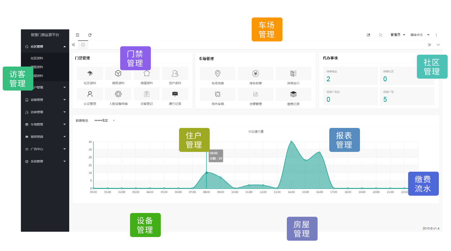 訪(fǎng)客管理:訪(fǎng)客微信人+車(chē)同時(shí)預(yù)約;住戶(hù)分享開(kāi)門(mén)鑰匙(支持3種類(lèi)型);訪(fǎng)客現(xiàn)場(chǎng)登記。